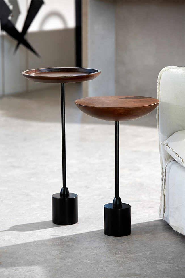 Alur Studio’nun sac ve ceviz malzeme ile tasarlanmış yan sehpa seti, modern ve minimal tasarımı ile yaşam alanlarınıza şıklık katar. Yuvarlak ceviz üst tablası ve güçlü sac gövdesi ile dayanıklı ve işlevseldir. Dekoratif objeler ve kitaplar için ideal bir sergileme alanı sunar.
